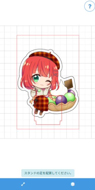 アクスタの場合は差込部分のツメ(差込ツメ)をお好きなところに配置し、続けて台座のデザインも行います。