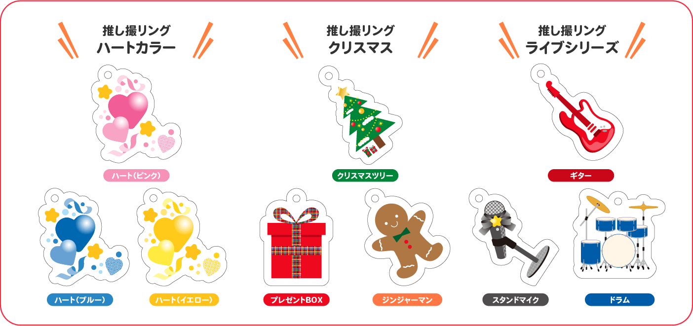 同じく「推し活グッズの達人」コラボチャームも登場! アクキーを更にかわいく♡ 同デザインの推し撮リングは推したつでゲットできます! シナジーたっぷりの推し撮リングを使って旅先や日常で写真を撮ろう♪