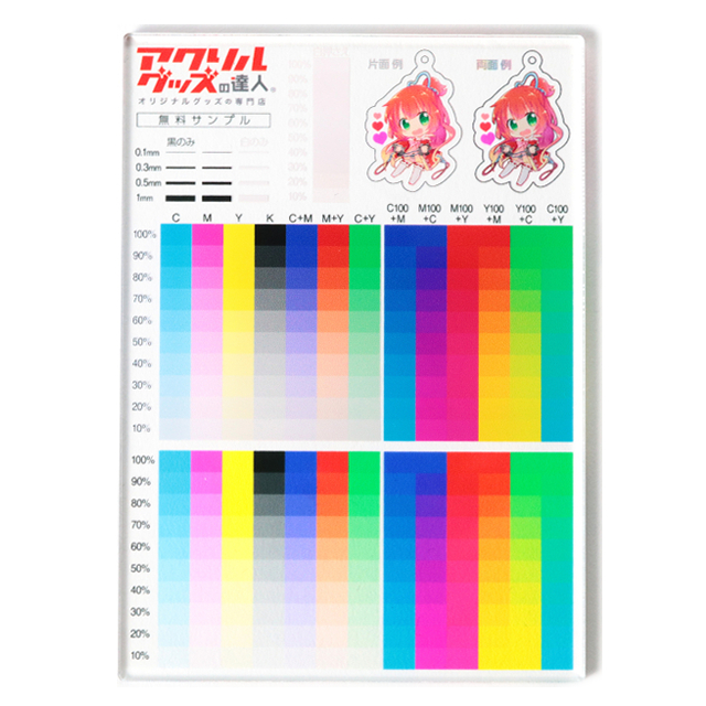| 備考 | 【セット内容】 ・透明アクリル3mm厚(片面印刷) ・オーロラアクリル(片面印刷) ・水面アクリル(両面印刷) ・カラーチャート(CMYK) ・カラーチャート(M+Y) ・カラーチャート(C+M) ・カラーチャート(Y+C) 計7種類を1セットとしてお届けいたします。 【標準納期】 15時までのご注文で3営業日後発送 【配送】 ネコポスで発送(到着日時指定不可) 【注意事項】 ・システム上複数セットの請求が可能ですが、おひとり様1セットまでの請求とさせていただきます。 (旧無料サンプルの請求は含まれません。ぜひ新しくなったサンプルをご覧ください!) ・PC、スマホモニターの環境・設定により画像の色と実物の色が若干異なる場合がございます。 ・在庫状況により納期が変動する場合がございます。 ・到着日時指定はいたしかねます。 |